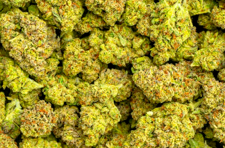 Visually, the buds are dense and chunky, enveloped in a generous layer of milky trichomes that glisten in light. Their coloration frequently features forest greens with lime accents, contrasted by vibrant orange pistils, while the sticky resin finish gives them a glossy, tantalizing look.
