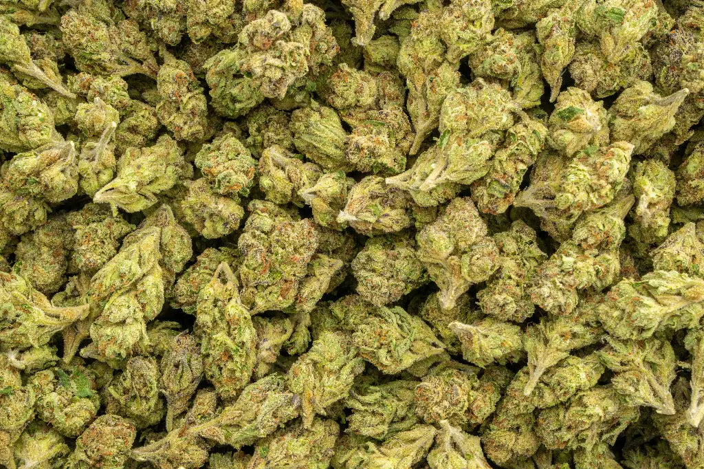 Visually, the buds are dense and chunky, coated in a thick carpet of frosty trichomes. Their coloration often displays forest greens with vivid purple highlights, interwoven with bright orange pistils, and the resinous, glossy finish adds to their eye-catching appeal.