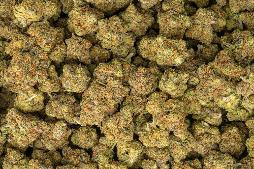 Visually, the buds are dense and compact, heavily coated in sparkling crystalline trichomes. Their coloration often includes deep forest greens with pale lime highlights, contrasted by amber pistils, and the sticky resinous finish gives a glistening, sugary appeal.