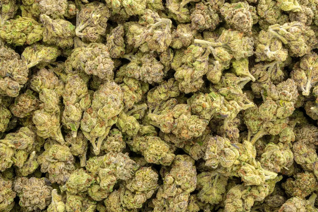Visually, the buds are dense and well-trimmed, coated in a heavy mantle of frosty crystal trichomes. Their coloration often includes deep forest greens with purple accents, interlaced with bright orange pistils, and the resinous finish gives them a glossy, candy-like appeal.